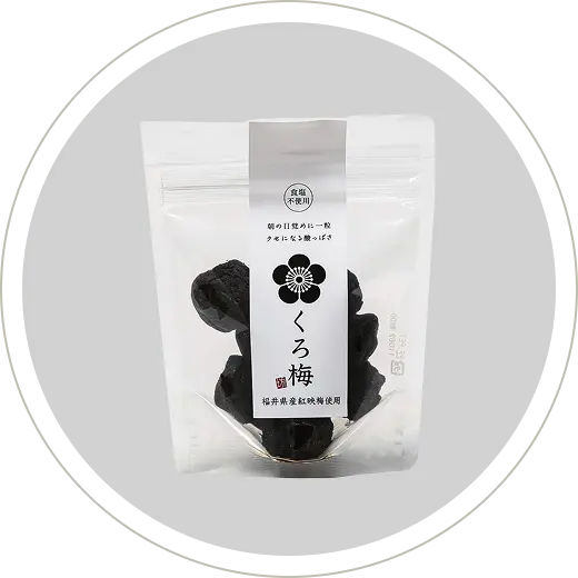 - くろ梅、はちみつ、黒酢、味噌、プルーンなど