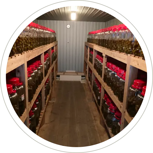 温度管理された熟成室で、梅の状態をこまめにチェックしながら、すべて手作業で丁寧に製造。